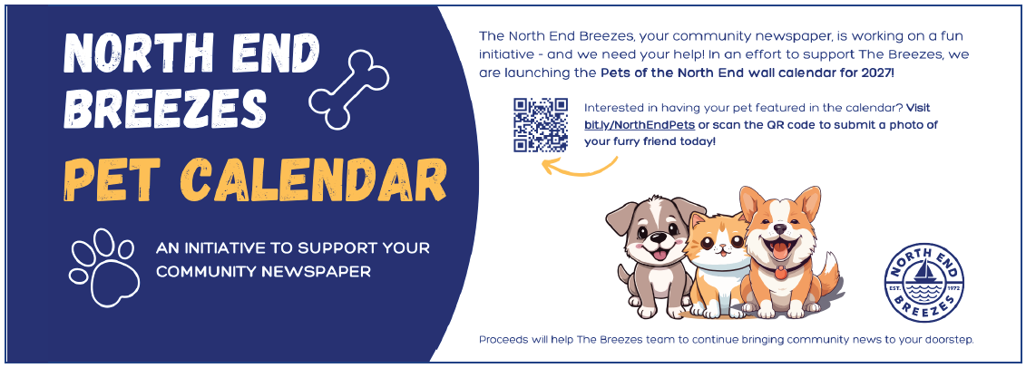 We have the Pets of the North End 2027 calendar – to be for sale by fall 2026.Click on the banner...